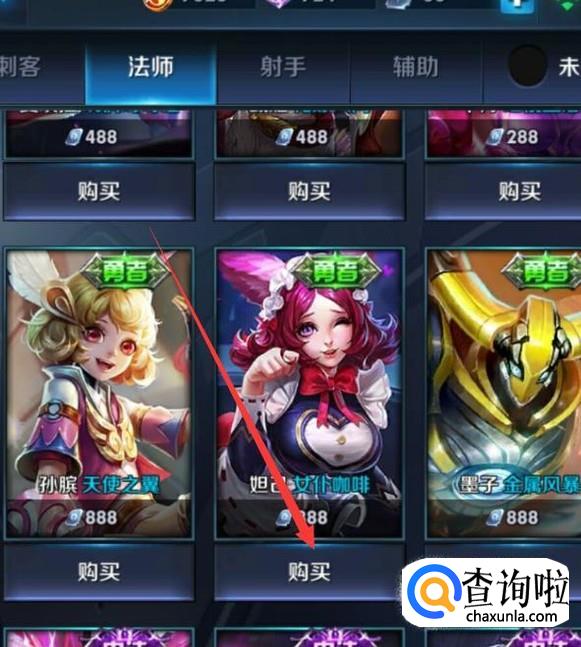 进入之后,在“法师”页面找到妲己皮肤,点击“购买”即可,如图所示。