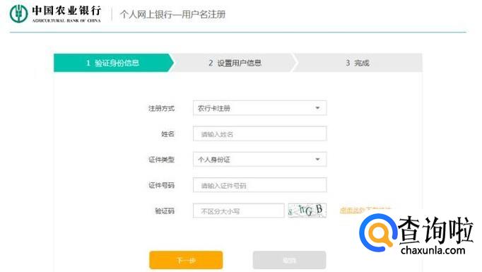 然后,我们就进入了个人网银的注册界面,根据要求填写身份信息和银行卡号,就能自助注册网银了。