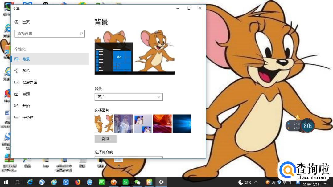 如果背景图片尺寸与电脑屏幕大小不相似,选择窗口中的“拉伸”然后保持修改