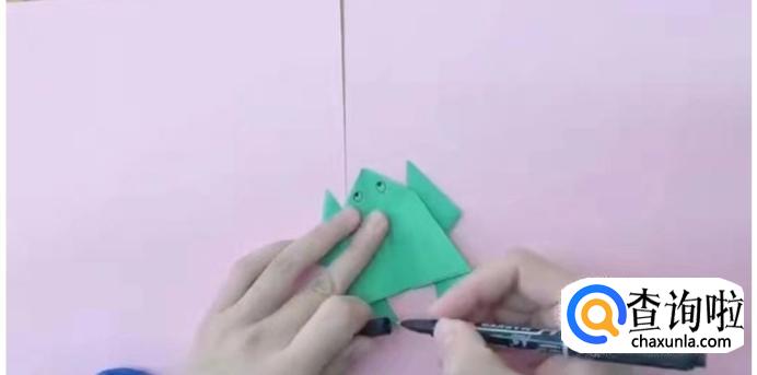 再用笔画出小青蛙画出眼睛。