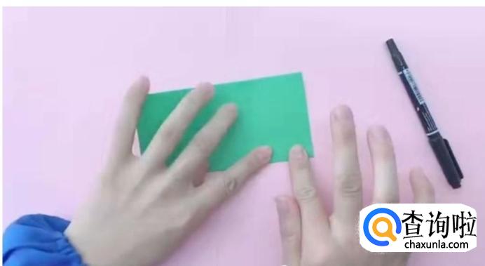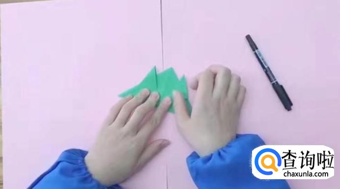 沿着折叠线将彩纸向内折,两边折完之后,立体三角形就出现了。