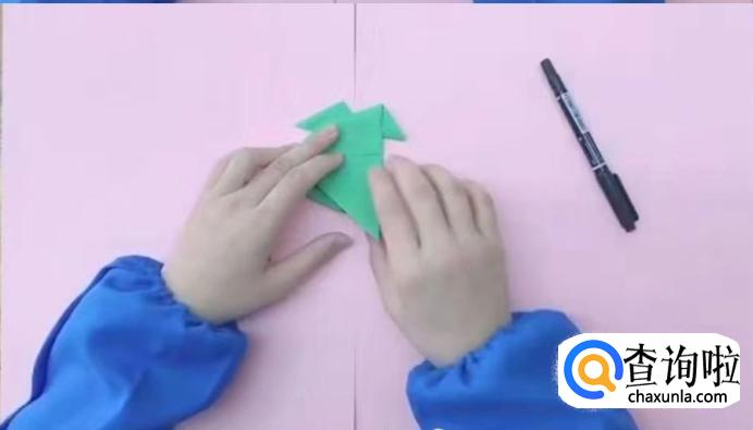 沿着中间45°折出青蛙的两条前腿。