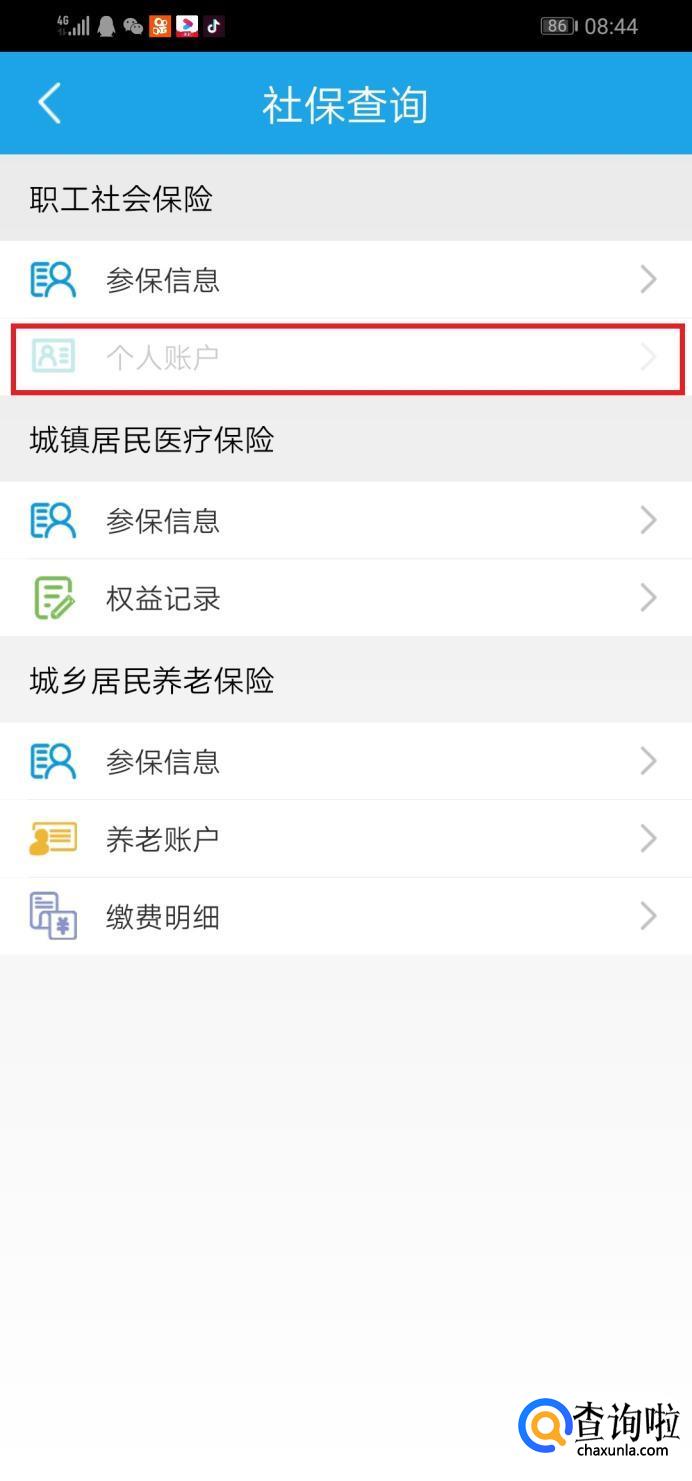 若是想要看缴费信息,则点击“个人账户”,即可看到缴费情况。