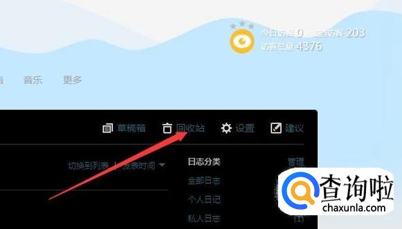 进入到我的日志之后找到回收站这一一个选项,然后点击进入。