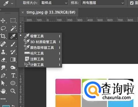 打开图片之后,在左侧工具栏中选择“吸管工具”