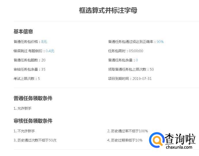 然后会有一个资格考试,看你是否可以完成任务。在页面下有“任务说明”,可以仔细阅读,觉得记住了就点击下方“资格考试”。通过了以后做这一类型的任务就不用再考试了。