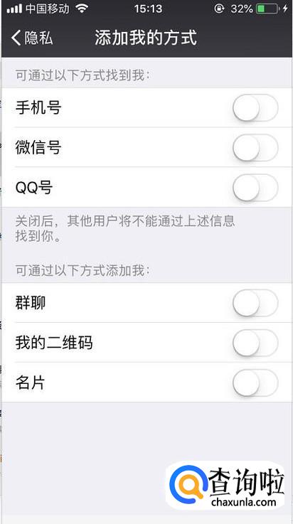 最后把手机号、qq号和微信号全部关闭即可,那么别人将不会找到你的微信。