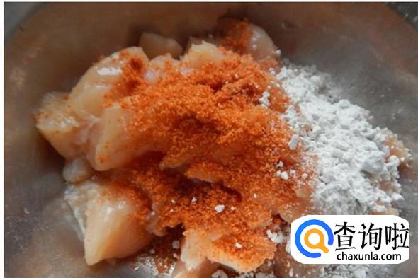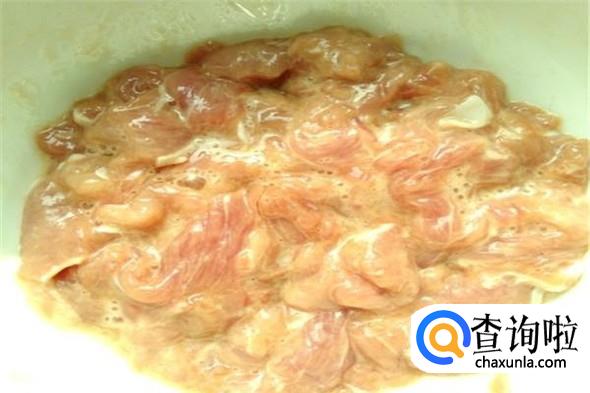 里脊肉加调料腌制十五分钟后加入胡椒粉和淀粉或者红薯粉(四川地区一般加红薯粉)调好。