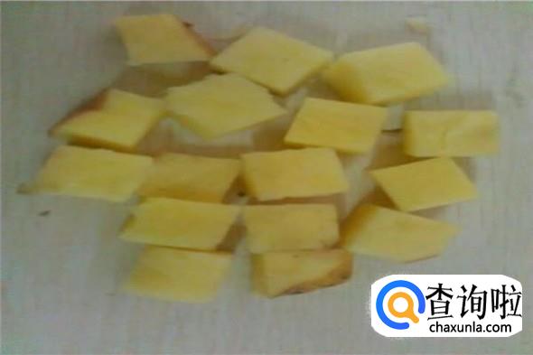 菜椒、里脊肉、菠萝切丁备用。