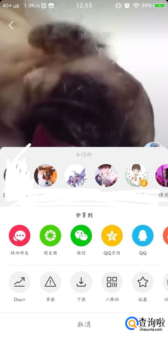找到自己喜欢的小狗舔屏视频,打开视频点击右下角的箭头。