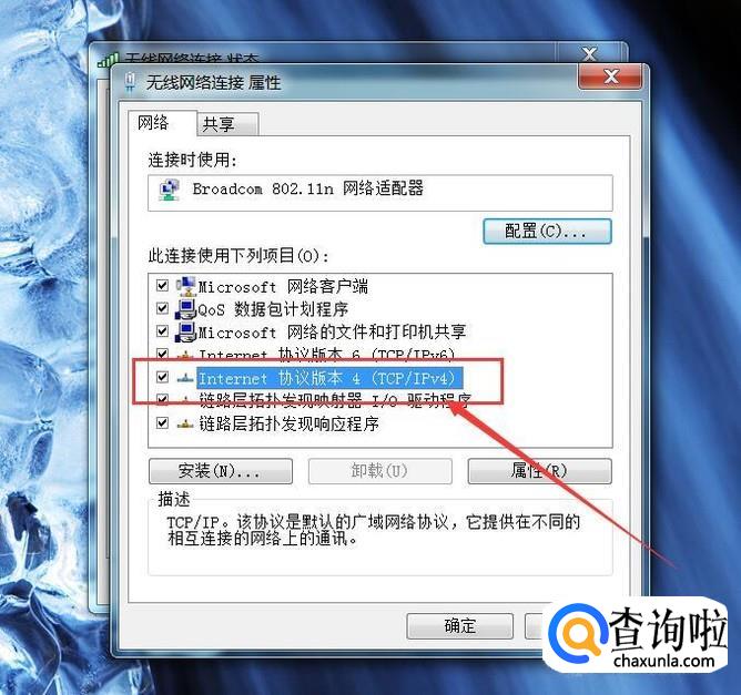 在属性配置页面中,选择“Internet协议版本4”选项,并双击打开该设置页面。