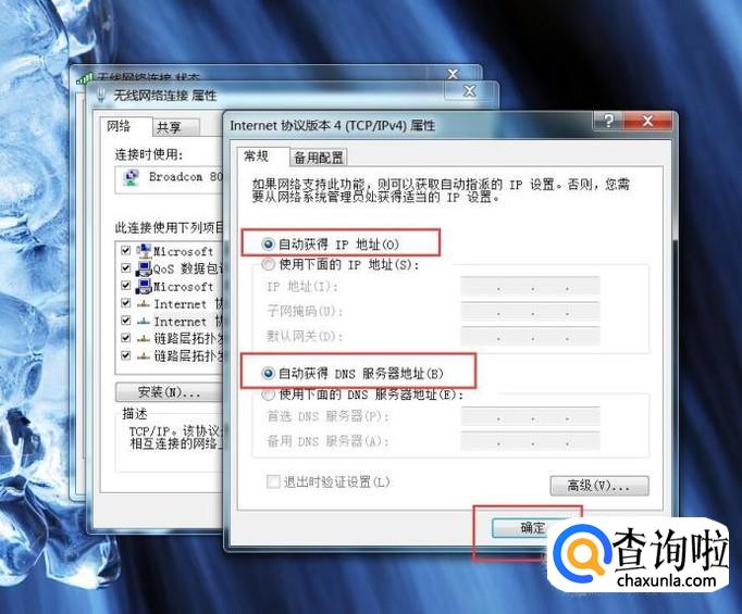 在接下来的设置选项中,点击选择默认的自动获取IP地址和DNS服务器地址,然后点击确定按钮。