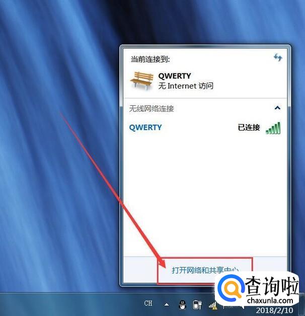 首先,点击电脑系统的WLAN网络系统托盘图标,打开“网络和共享中心”选项。