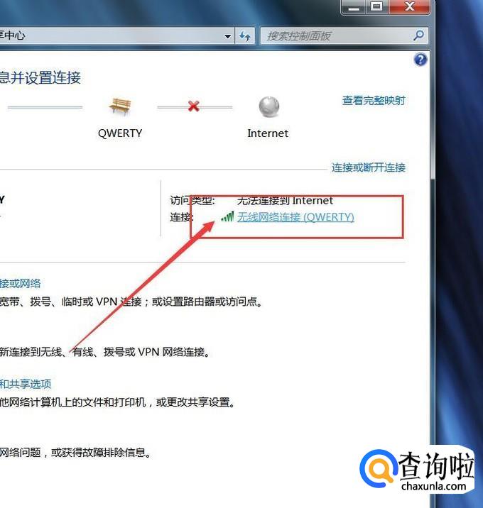 在网络和共享中心页面中,即可看到当前连接的无线网络,点击该无线网络进入详情页面。