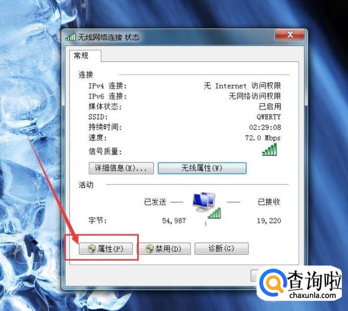 在无线网络详情页面中,点击选择“属性”菜单按钮,进入无线网络属性配置页面。