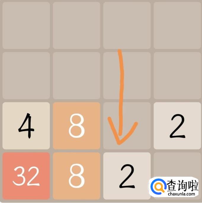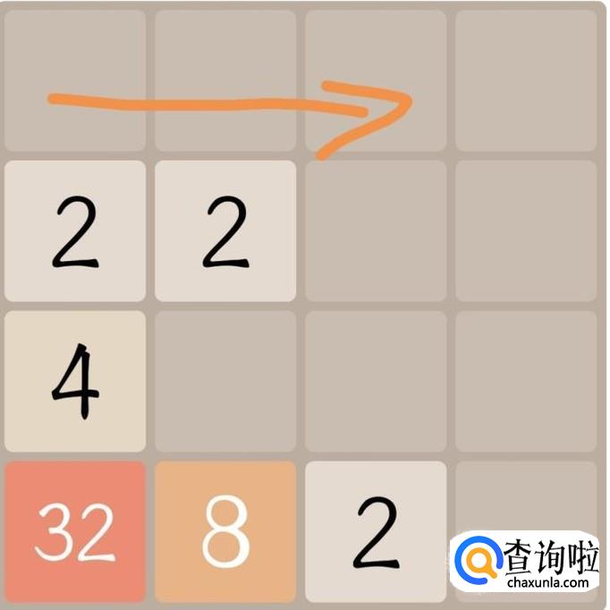 游戏刚开始的时候可以看到都是一些比较小的数字,往箭头方向滑动屏幕,将两个最小的数字“2”合成为较大的数字“4”