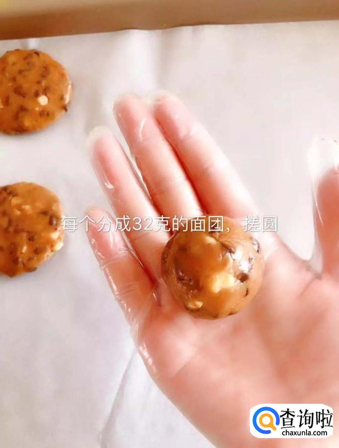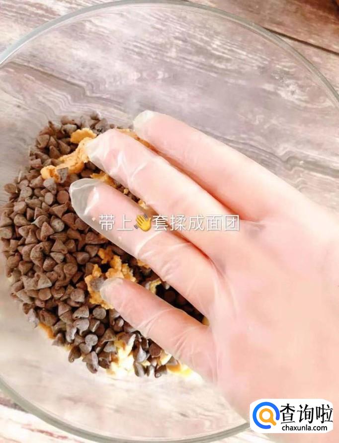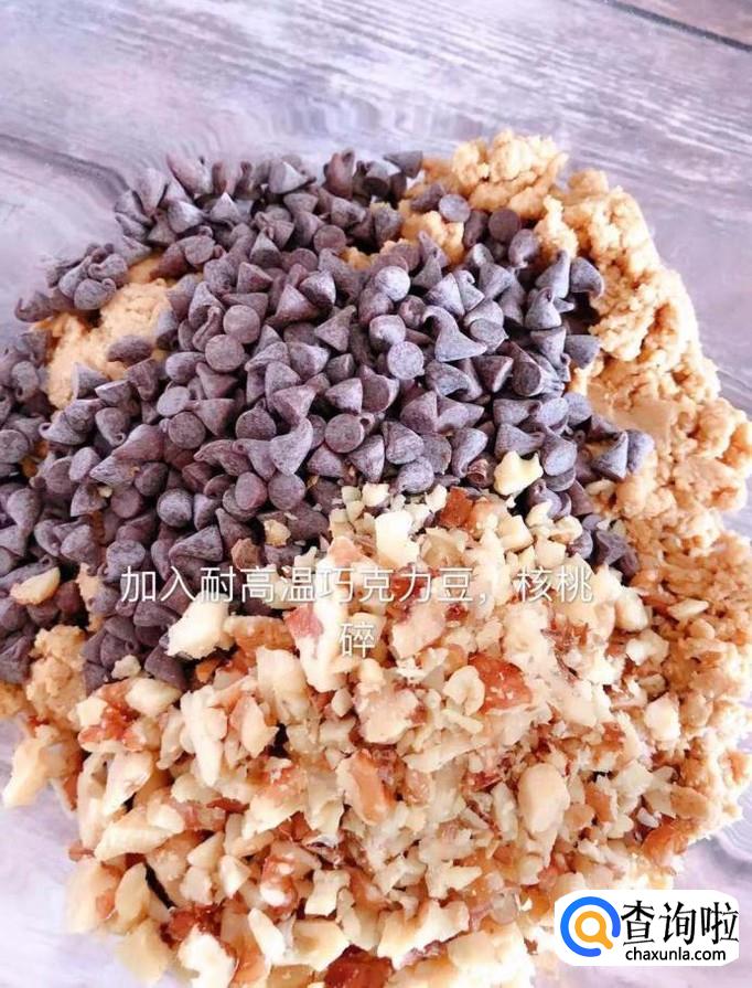 然后加入巧克力豆和核桃仁,如下图所示。