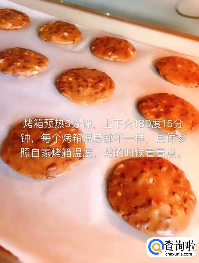 接着把小面团按扁,放入烤箱,上下火180°烤15分钟。小贴士:1.烤箱最好先预热五分钟;2.因为每个烤箱的温度都有差别,所以大家在烤曲奇的时候,一定要多看着点。