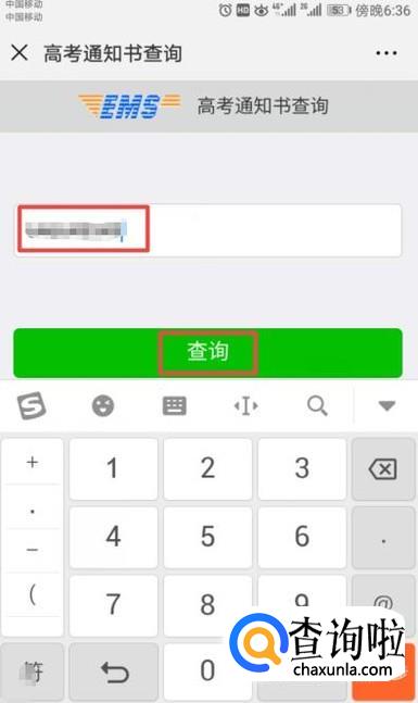 弹出的界面,我们输入准考证号,之后我们点击查询就可以了。
