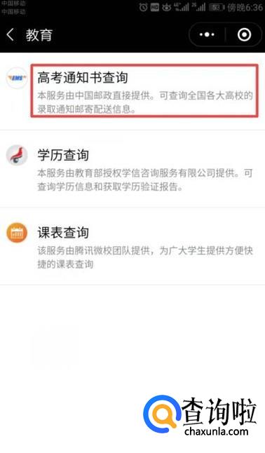 弹出的界面,我们点击高考通知书查询;