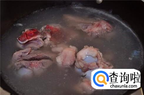 大骨头买回家之后清洗一遍,然后锅里烧开水将大骨头放进去焯水,等到大骨头变色之后捞出来放进盆里,再用清水多次冲洗,将血沫子冲洗干净控水。