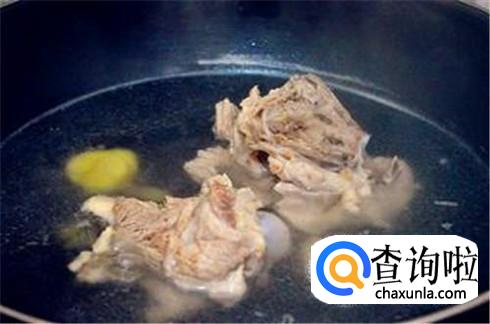 锅里加入适当清水,记住要多加水,因为熬大骨头汤的过程中是不可以再次加水的,再放入一些生姜片,将大骨头放进去大火烧开。