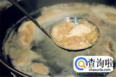 一般两个小时左右,大骨头汤就熬好了,这时候打开锅盖,将上面那一层油脂撇去,这些油脂并没有什么营养,只会叫人发胖而已。