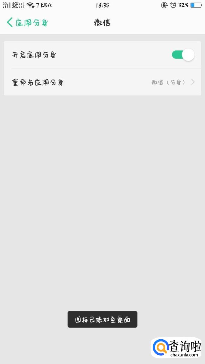 此时回到主屏幕就会有微信(分身)出现,点击之后,正常登陆即可。