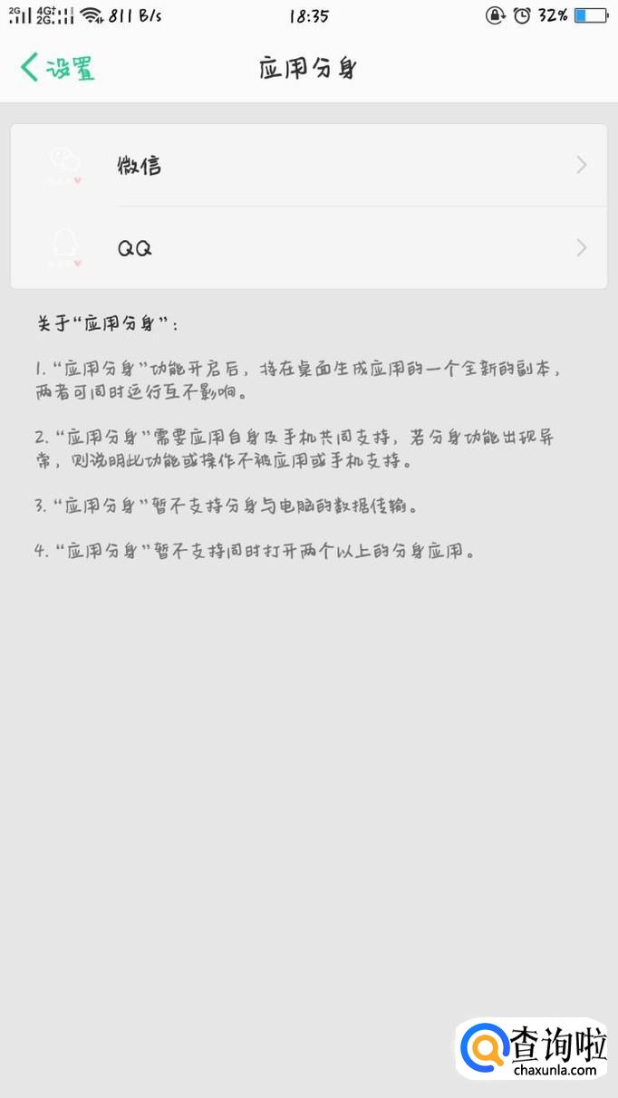 此时就会有可分身的APP出现,例如“QQ”和“微信”。