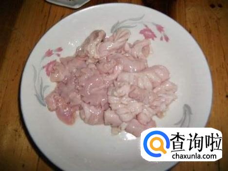 首先我们需要把生肠用清水清洗干净后去除掉内部的筋膜,切成小块备用。