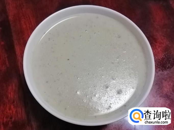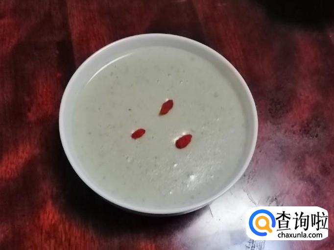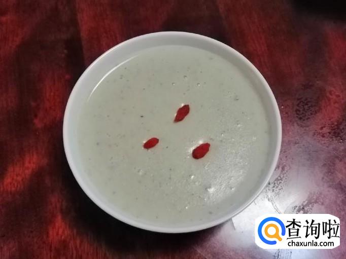 大约二十分钟后,豆浆机完成打浆工作,发出滴滴声,拔下豆浆机电源,打开豆浆机盖,倒出打好的豆浆,如图所示,薏米花生黄豆黑豆芝麻五谷豆浆就做好了,稍晾片刻撒入几粒枸杞,就可以喝了,香味浓郁营养丰富。