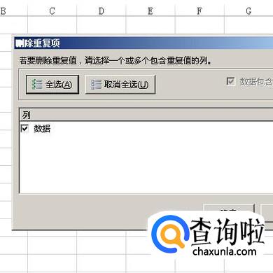 弹出删除重复项的对话框,在列这里勾选“数据”;再点确定。