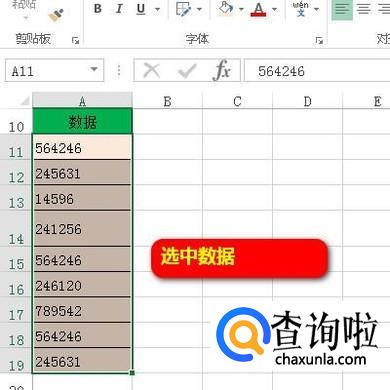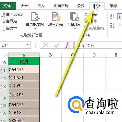 先把数据全选中。鼠标移到菜单栏中,点击:数据