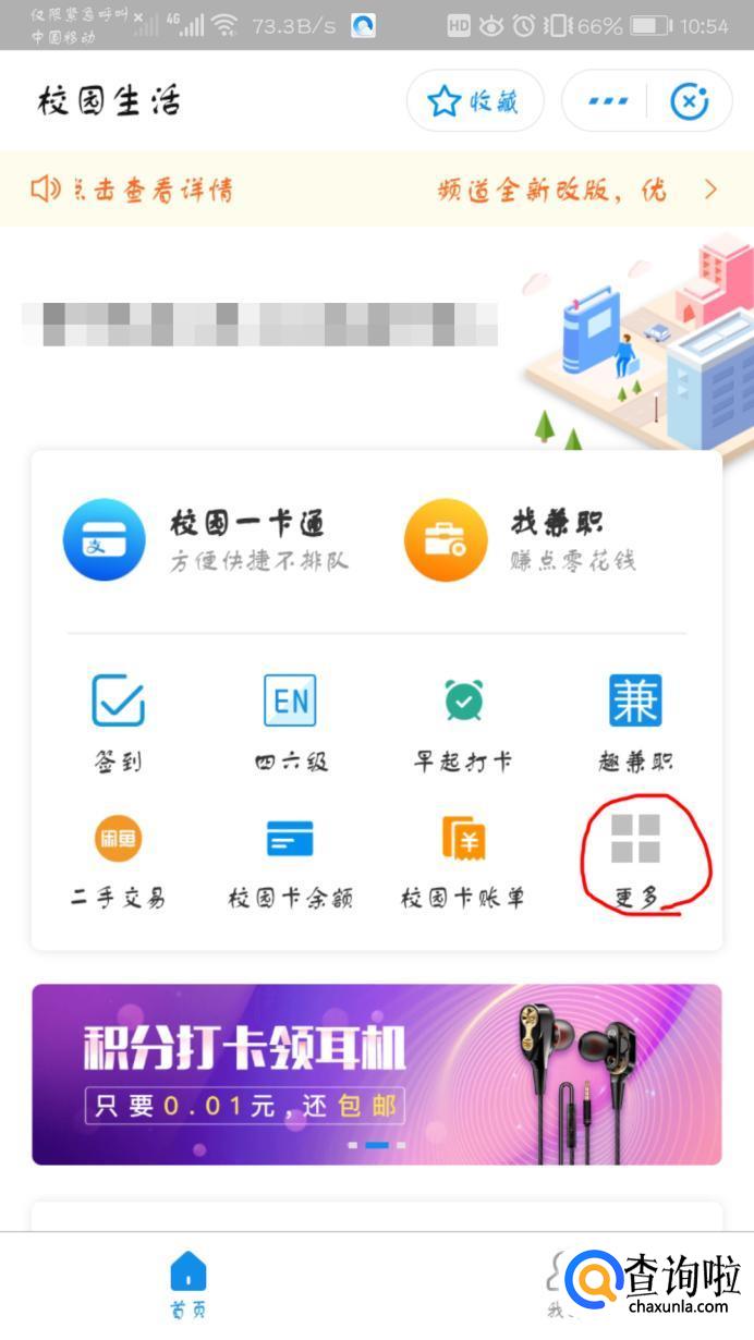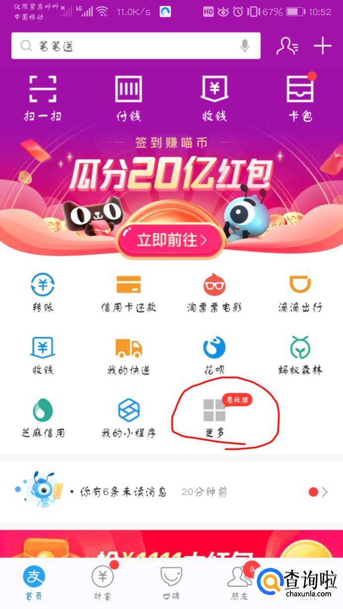 点击支付宝app,在首页点击“更多”。