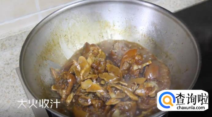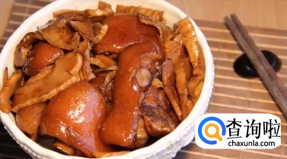 收汁完以后,将其出锅盛盘,冬笋焖猪脚就完成了。