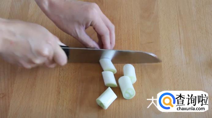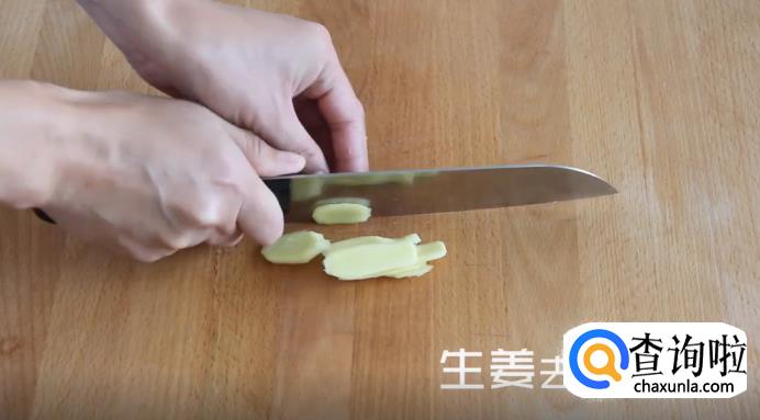 接着,将生姜去皮切块,大葱也切成段,放在一旁备用。