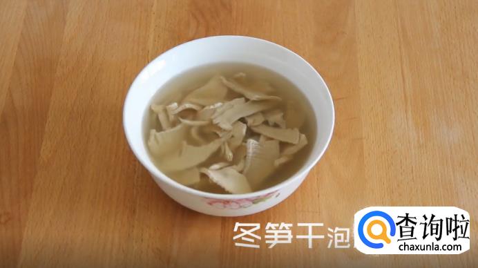 首先,将准备好的猪脚切成块,再把冬笋干放入水中浸泡3个小时。