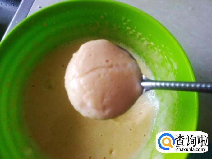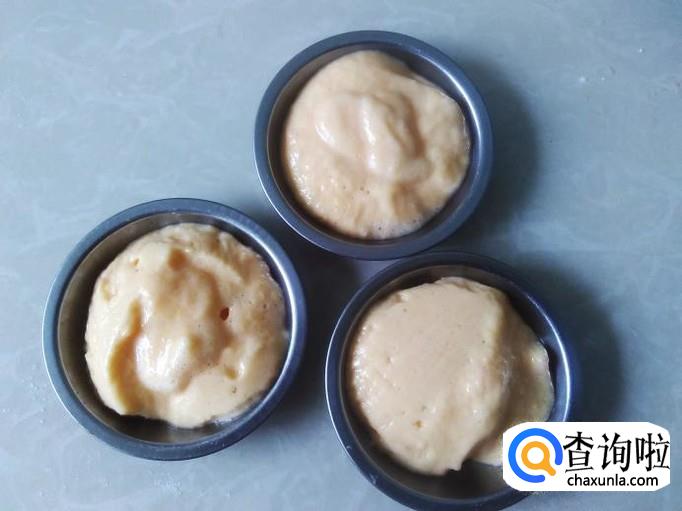 用勺子把搅拌好的面糊装到模具里。【我没有模具用小碟子代替】