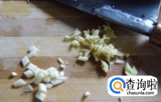 我们将另一半的姜洗净去皮切碎,蒜切成末。
