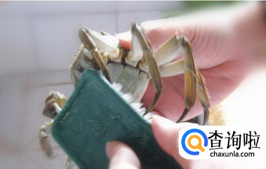我们用刷子清洗干净螃蟹。