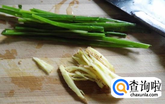 准备好几根葱并将其切成段,姜准备一半将其切丝。