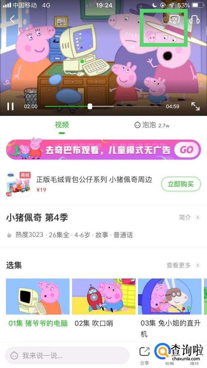 然后点击屏幕右上方的TV图标。