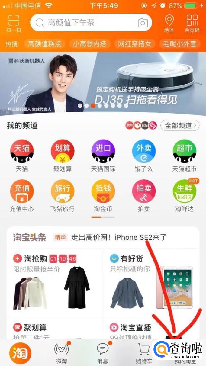进入淘宝首页后,点击【我的淘宝】进入页面。