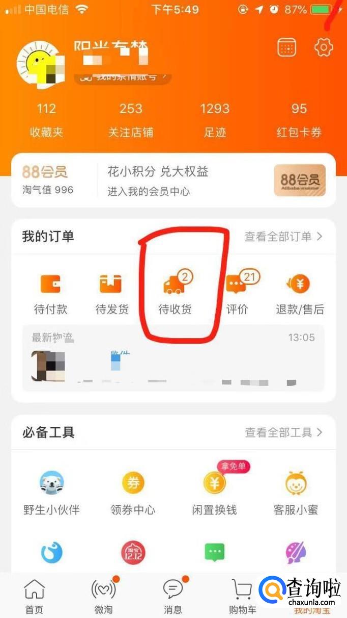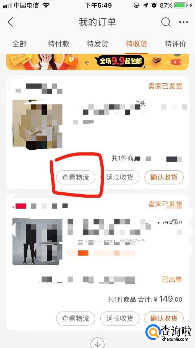 接着可以看到【待收货】的订单,点击进入。