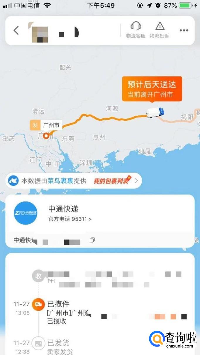 这时候就可以看到详细的地图已经文字说明,这就是物流的具体信息。