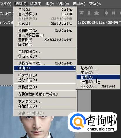 鼠标点击选择菜单;在弹出的列表中再点:修改;再点:扩展