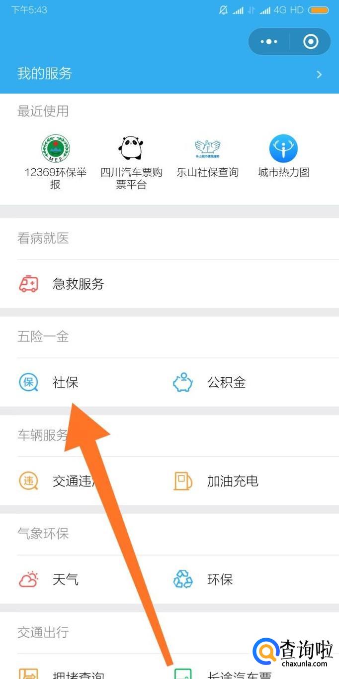 再点击进入“社保”服务功能。