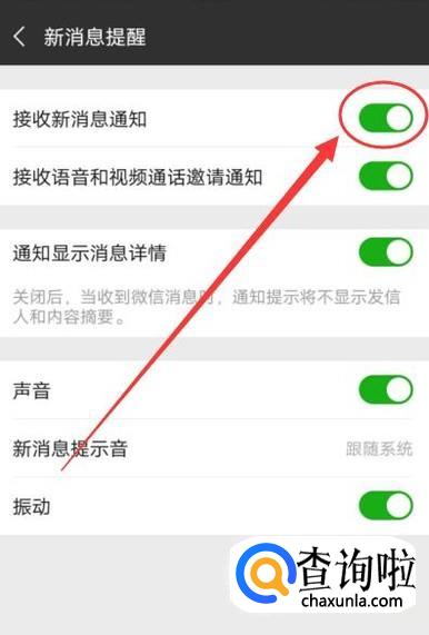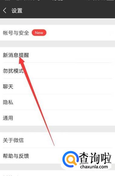 进入之后,点击“新消息提醒”,进入下一页面,如图所示。