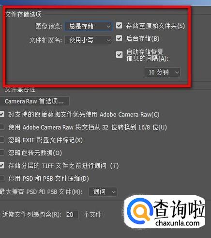 调出其操作面板。在|图像预览这里设置为总是储存;再把后台储存勾选上。再设置。然后,也可以再勾选自动储存恢复;并设置其时间。然后,再点击确定即可。