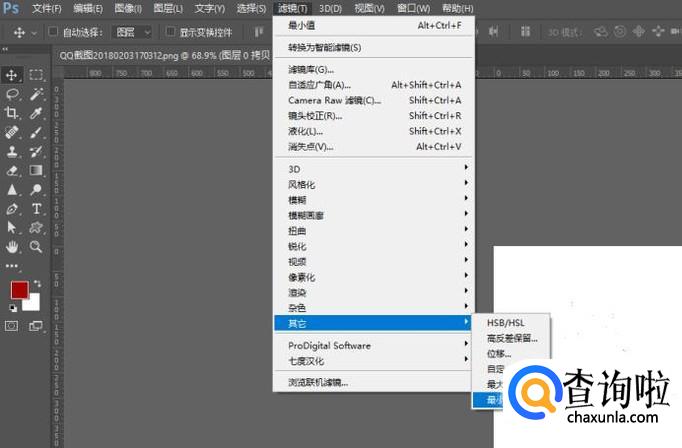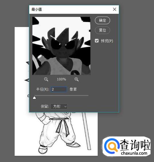 然后点击菜单中的滤镜-其他-最小值,设置最小值为2,点击确定,如下图所示。